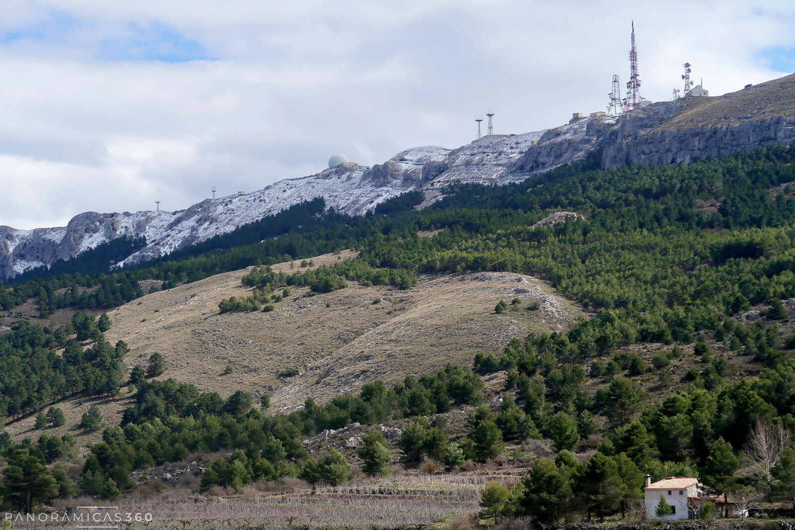 Sigo por el cordal en dirección este, con la cumbre de Aitana y las antenas de la base militar frente a mí. En la cara norte aún queda una fina capa de nieve, que cayó la semana pasada, mientras que en la vertiente sur ha desaparecido por completo.