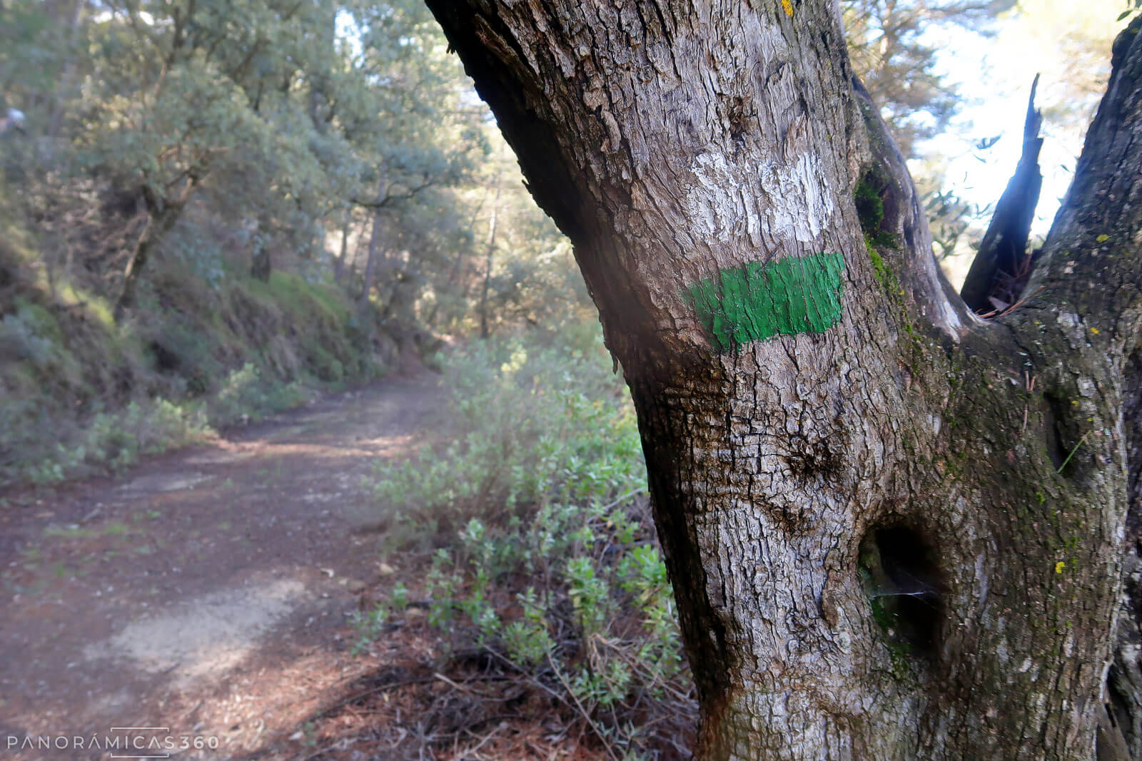 Dejo atrás la casa señorial y tomo una senda -conocida como Camí Vell d’Aitana y señalizada con marcas blancas y verdes de sendero local (SL)- que cruza dos veces la carretera CV‑770. Tras el segundo cruce, camino unos 150 metros por la carretera, hasta tomar una pista a mano izquierda.
