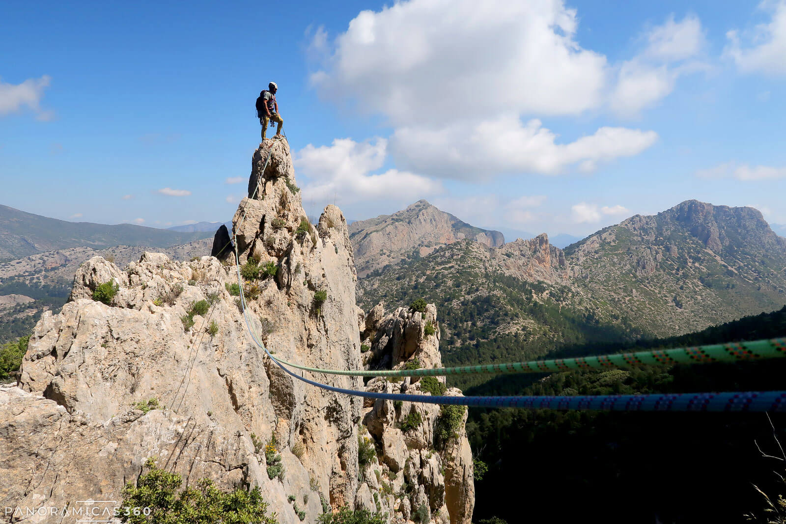 L4 (50 m, IV+): Sigo directo por la arista, muy marcada y estrecha, avanzando siempre por el filo con un gran ambiente hasta llegar a la reunión.