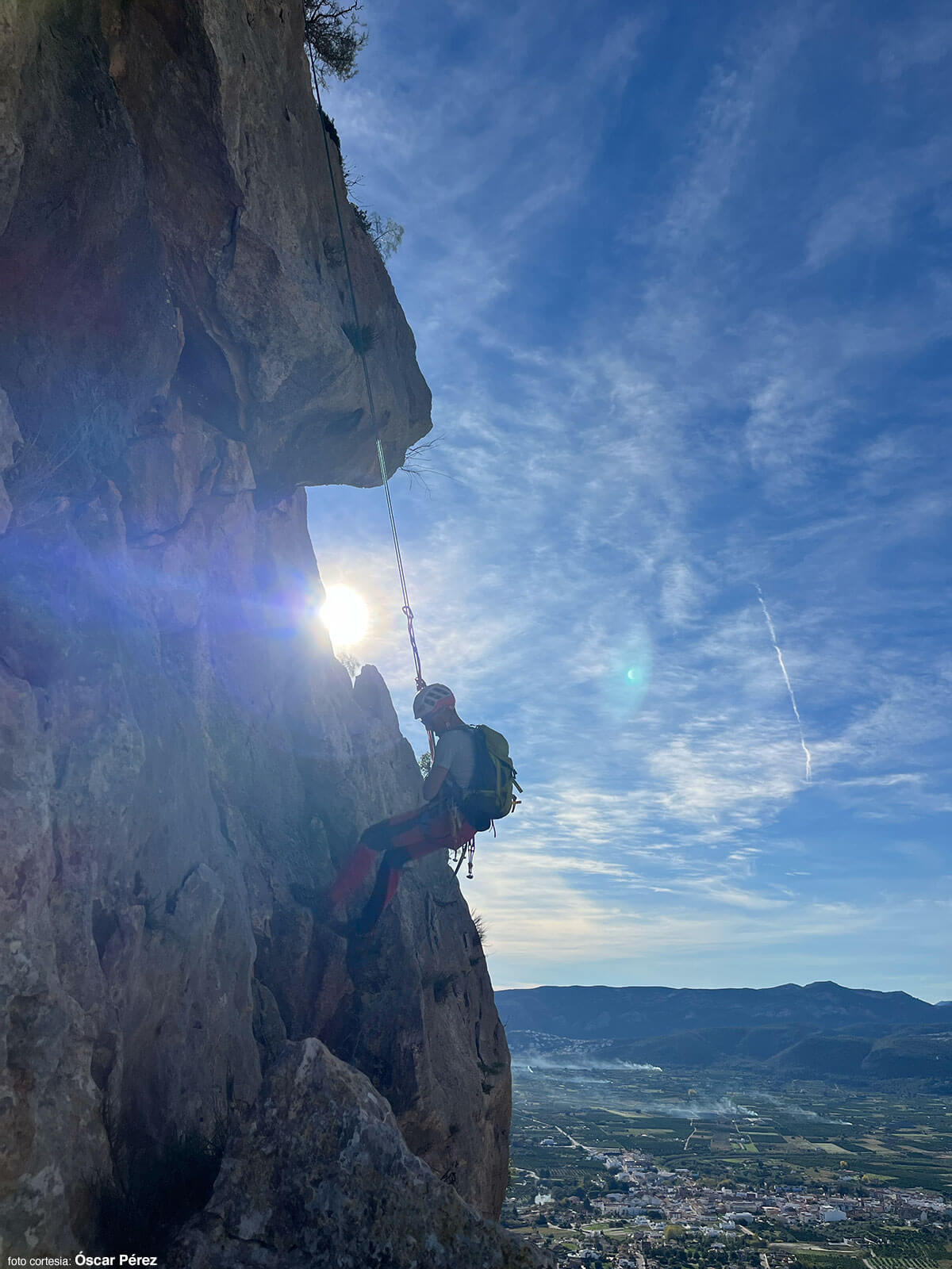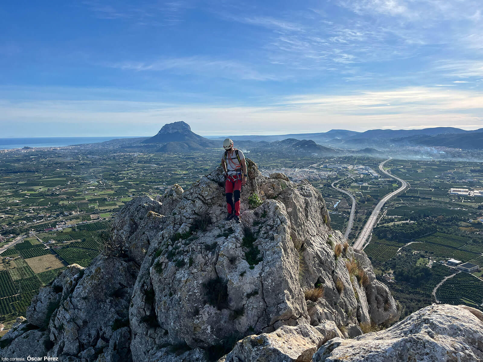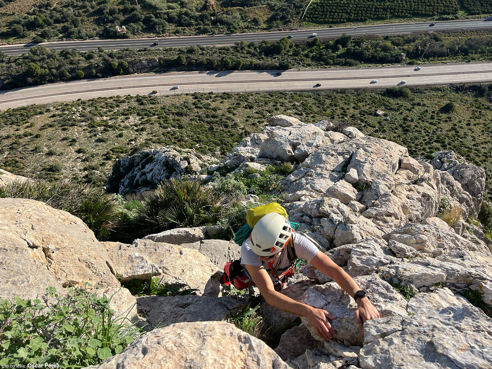 Cuando llegamos a la Creueta, Óscar, movido por la curiosidad, vuelve sobre sus pasos por el filo para explorar el muro que antes descartamos. Siguiendo el cordal, llega hasta donde termina el paño de roca que arranca en el rápel. Al volver me dice: “Por ahí se puede”. Ya en casa, al hojear el libro 23 Crestas y Aristas de la Comunidad Valenciana, confirmo lo que Óscar ha visto: esa línea directa que evitamos, es un largo de 25 metros con un paso vertical (V). Aunque la alternativa por la izquierda me ha gustado mucho, este es un buen motivo para volver.