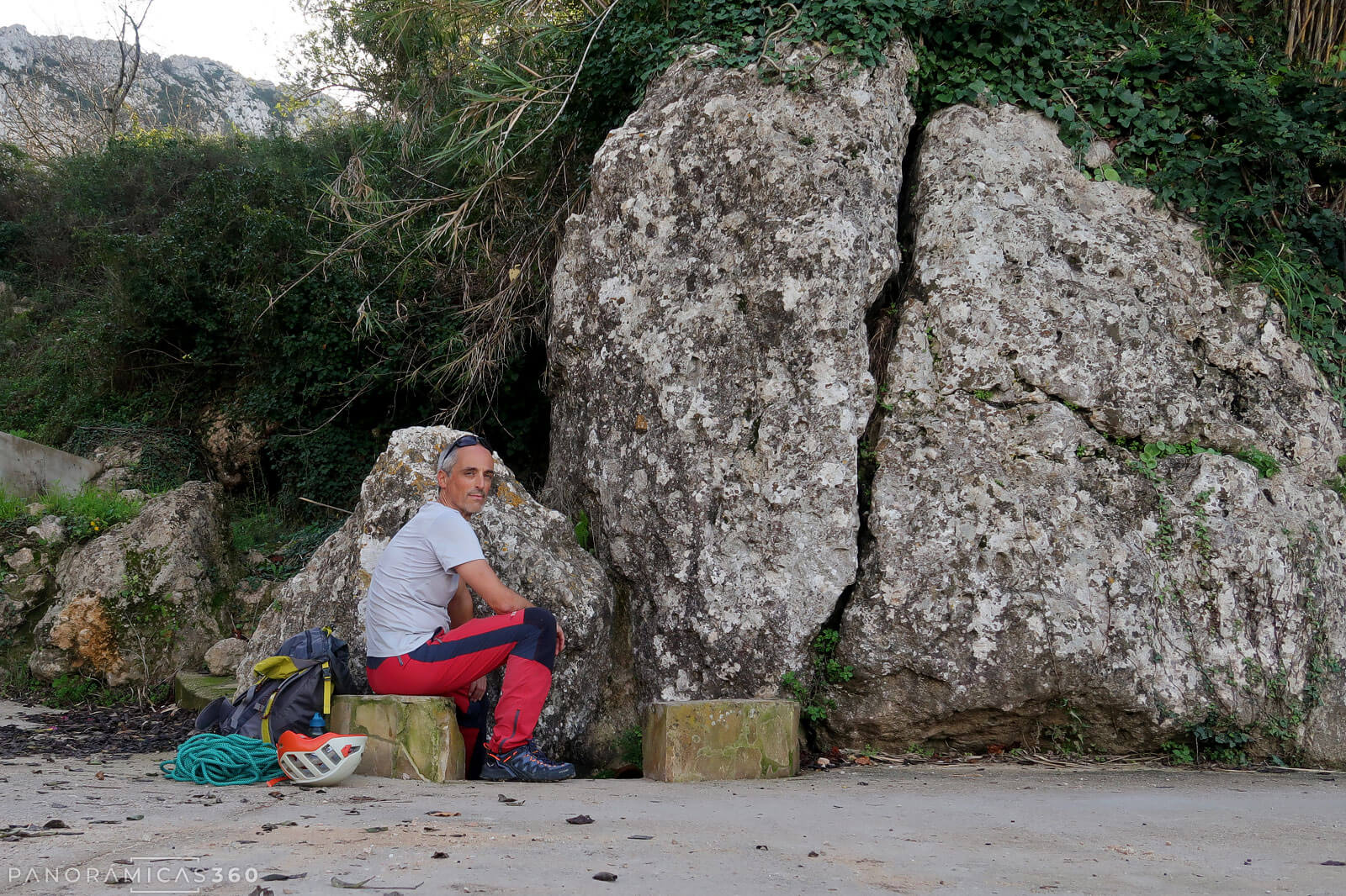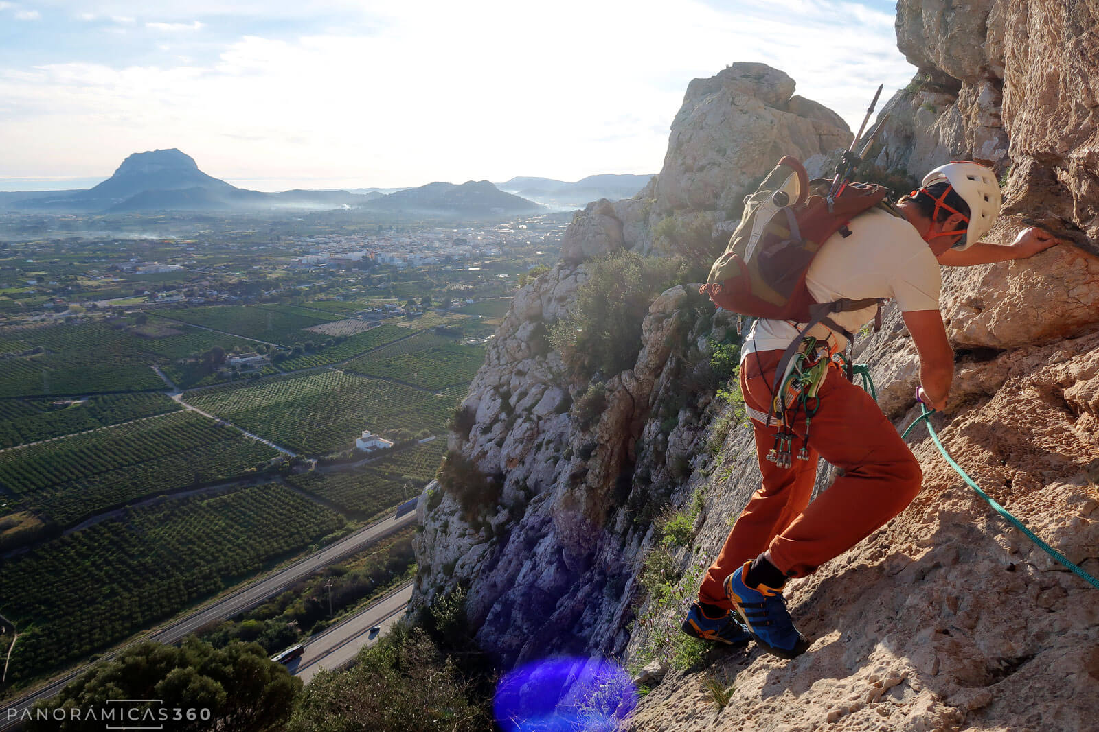 Siguiendo las marcas blancas y amarillas del PR-CV 415 nos dirigimos al Morro de les Coves. Tras dejar atrás la cantera, el sendero gira a la izquierda, ascendiendo en diagonal por la ladera de la montaña. Al llegar a la base de la pared encontramos una pequeña escuela de escalada. Nos detenemos un momento imaginando movimientos, pero hoy nuestro objetivo está en la cresta, así que continuamos monte arriba.