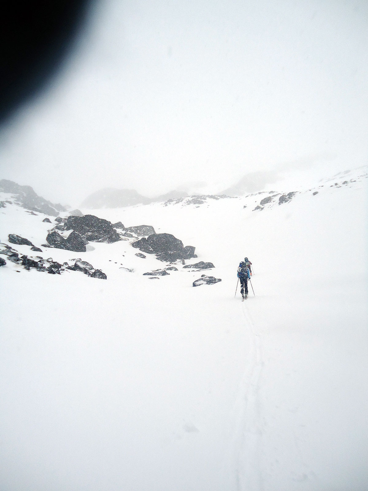 Ouvez Les Frontieres de Tiken Jah Fancoly, fue la canción que sonó en el móvil, esta vez a modo de despertador a las 6;30 de la mañana. A pesar de que la previsión meteorológica anunciaba un tiempo nefasto para el sábado, las enormes ganas, tanto de hacer algo de montaña como de reunirse tres buenos amigos de largo tiempo atrás, fueron muy superiores a cualquier anuncio de tormenta, por grande que fuera. Y el hombre del tiempo no fallo. Amaneció nublado y chispeando en la capital, a tan solo unos 600 mts de altura, cosa que empeoraría conforme ganasen altura. La idea era llegar hasta el refugio del Caballo que se encontraba a unos 2900mts. y pasar allí la noche para al día siguiente acceder hasta el pico del Caballo y poder descenderlo con los esquíes de travesía si todo resultaba según las previsiones, ya que para el domingo parecía escampar.