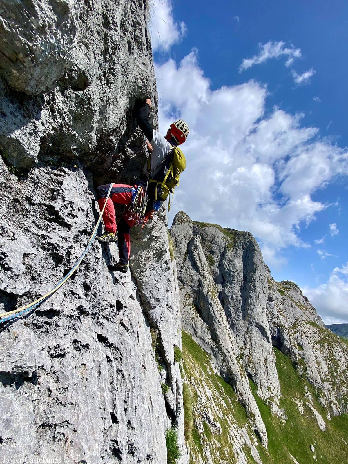 Tercera jornada de escalada en el viaje que hacemos Javi y yo por la Cordillera Cantábrica, y que de momento nos ha llevado a escalar la vía Meigas (200 m, 6a) en el Gilbo y el Espolón Norte del Espigüete (6c+/Ae). Hoy ponemos rumbo a los Picos de Europa, como siempre, sin un plan cerrado pero con muchas opciones sobre la mesa.