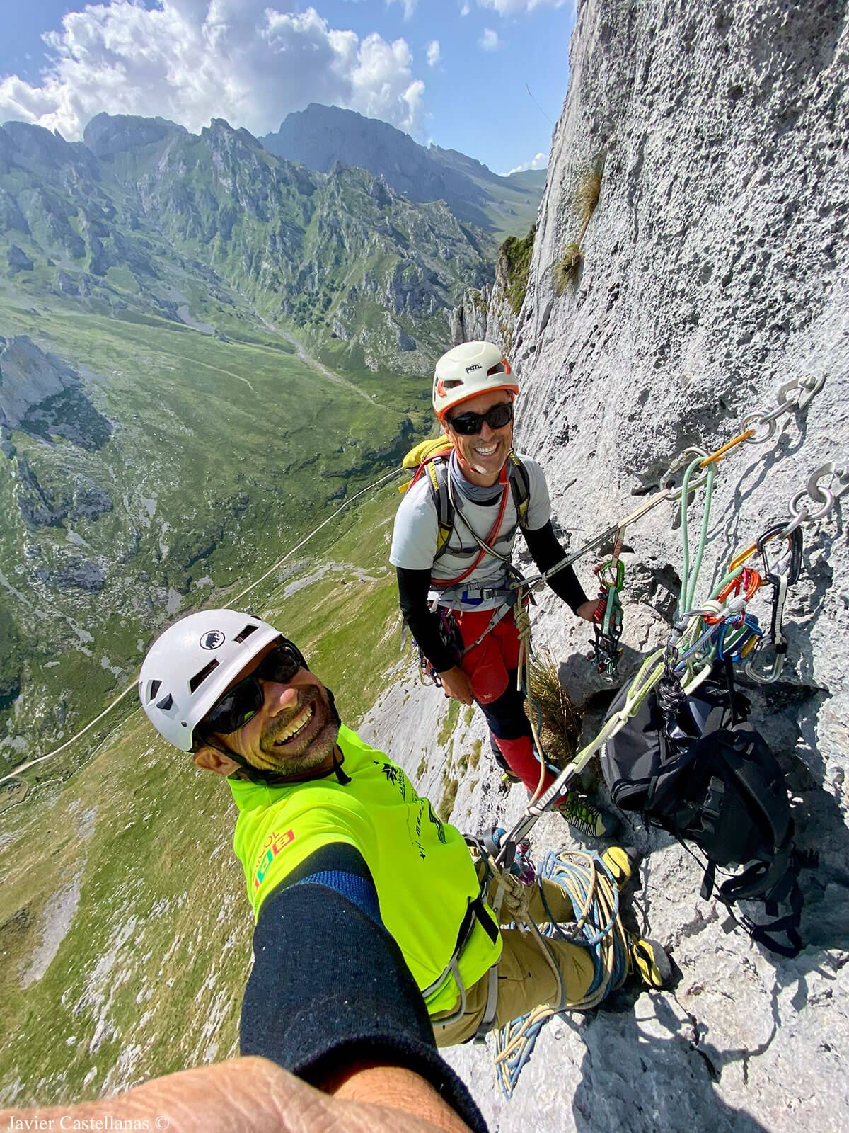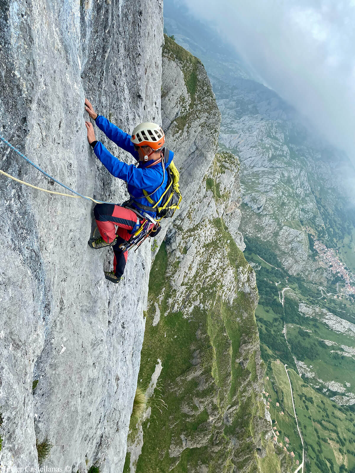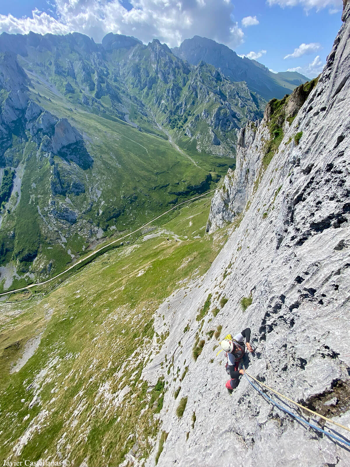 Aunque a la sombra de paredes más conocidas y codiciadas, la Peña Fresnidiellu ofrece una roca y un entorno que nada tienen que envidiar a aquellas. La textura adherente de su caliza invita a disfrutar cada metro y el ambiente de Vega Huerta, con el valle del Duje y Sotres al fondo, acompaña durante toda la vía.