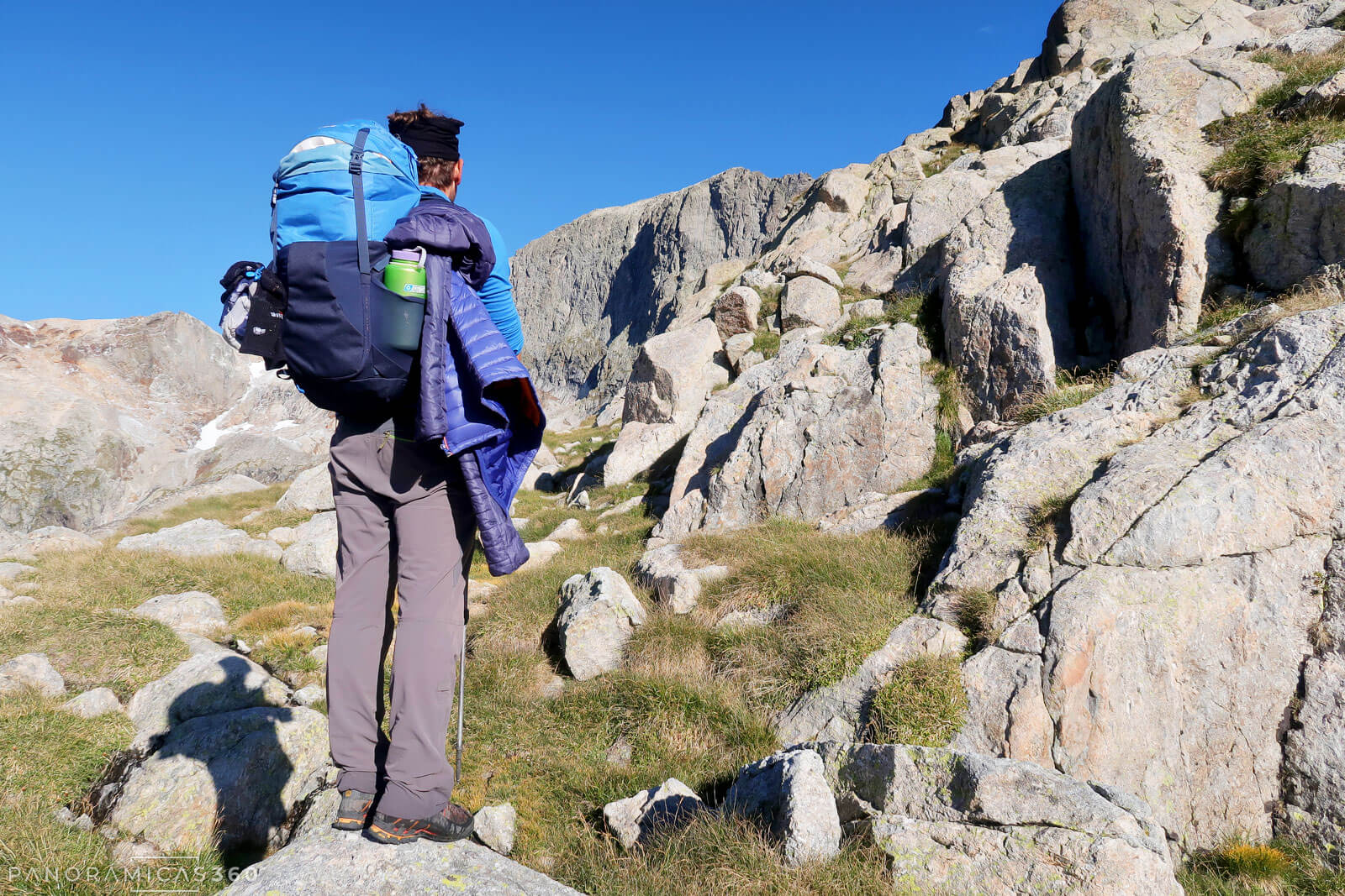 Para empezar, nos equivocamos. En lugar de rodear la Forca de Remuñe por el oeste para alcanzar el Portal de Remuñe y, desde allí, tomar el camino de bajada, nos desviamos al este mucho antes, descendiendo monte a través por un circo empinado por donde vamos improvisando el camino. Nos vemos obligados a realizar varios destrepes, y no tengo la certeza de que conseguiremos llegar a la Pleta de Arenals, donde se enlaza con el sendero, hasta que estamos prácticamente encima.