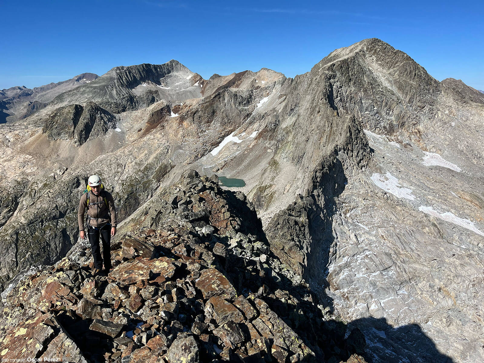 Desde la cumbre, la cresta que une el Maupas con la Tusse de Remuñe y su continuación, la de Crabioules, se dibuja perfectamente ante nosotros.