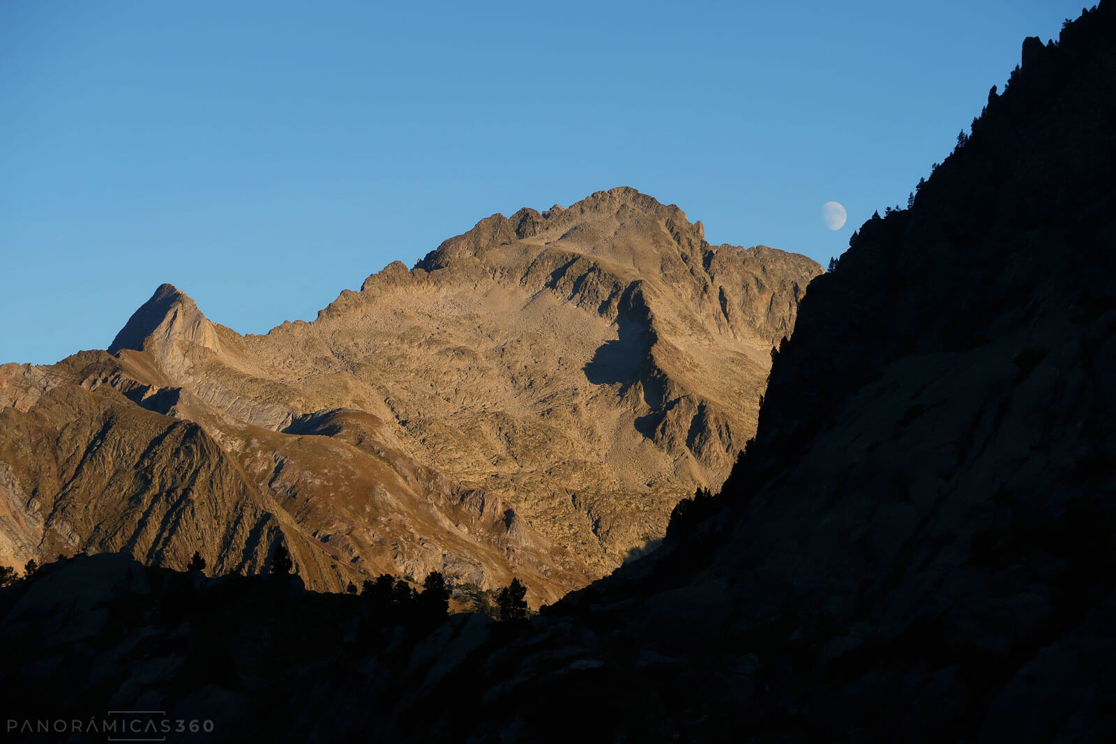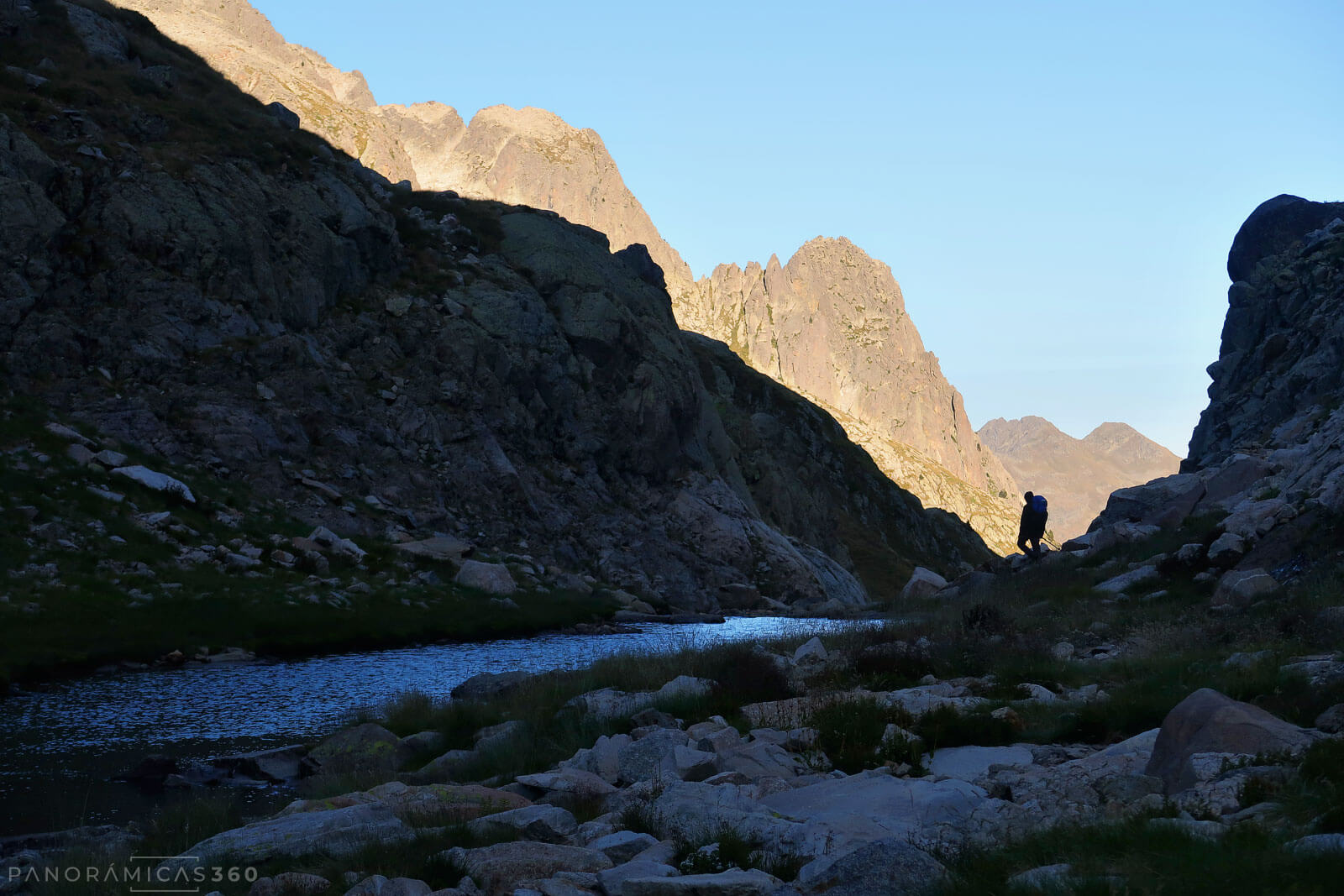 Cruzamos el bosque y poco a poco, al tiempo que entramos en calor, empieza a amanecer. El terreno se va abriendo y tras algo más de una hora llegamos a la Pleta de Remuñe, donde dejamos la senda para ascender por la orilla opuesta del ibonet de Remuñe. Siguiendo unos mojones que a ratos perdemos, continuamos ascendiendo primero por fajas con hierba, para después adentrarnos en la cuenca sur del Boum y el Mall Barrat, formada por placas de granito moldeadas por el antiguo glaciar.