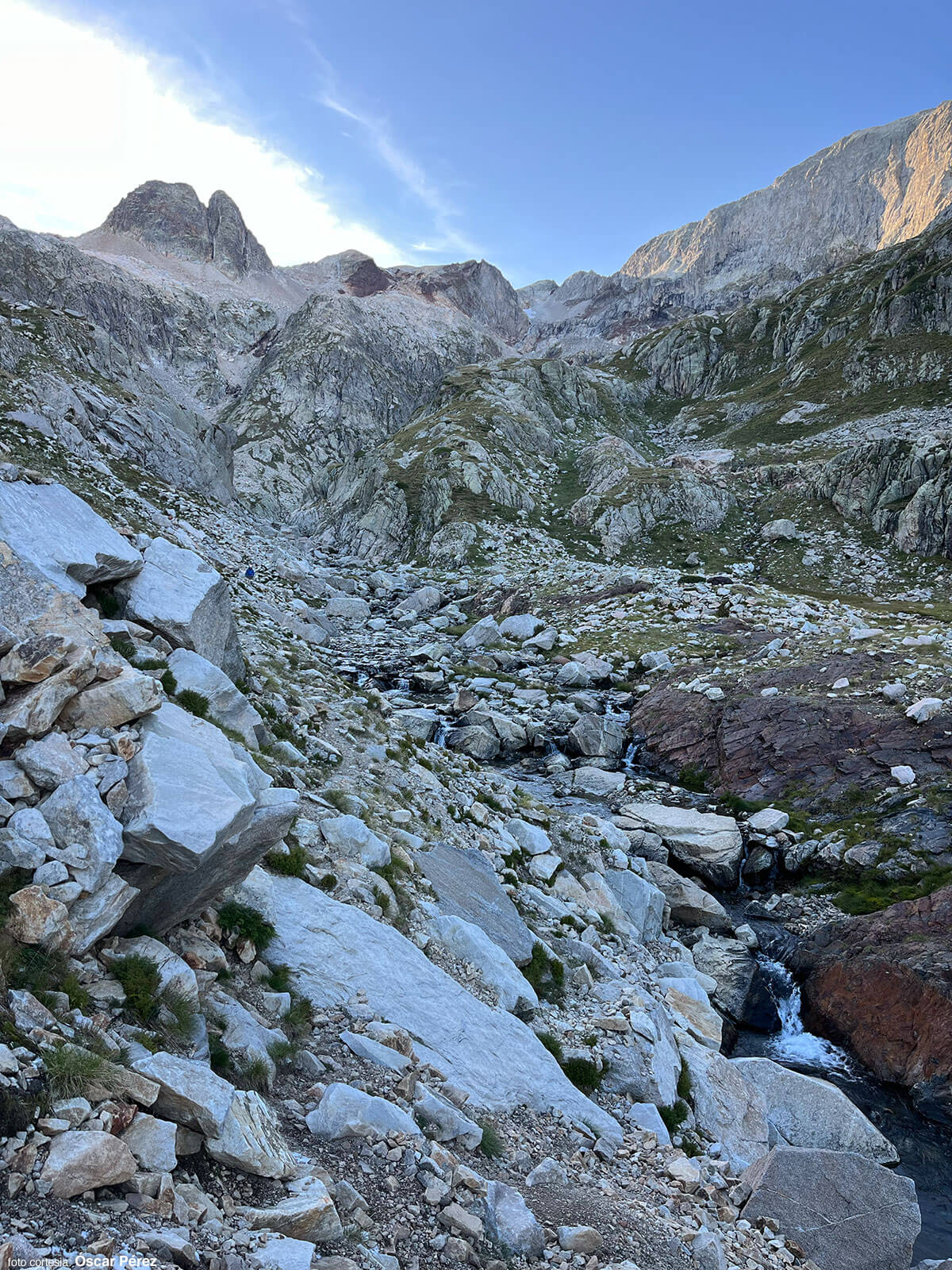 Siguiendo una senda bien marcada remontamos el valle de Remuñe. No es la primera vez que recorro este valle. Cuando en 2015 hice la cresta del Perdiguero subimos por aquí hasta la Forca de Remuñe.