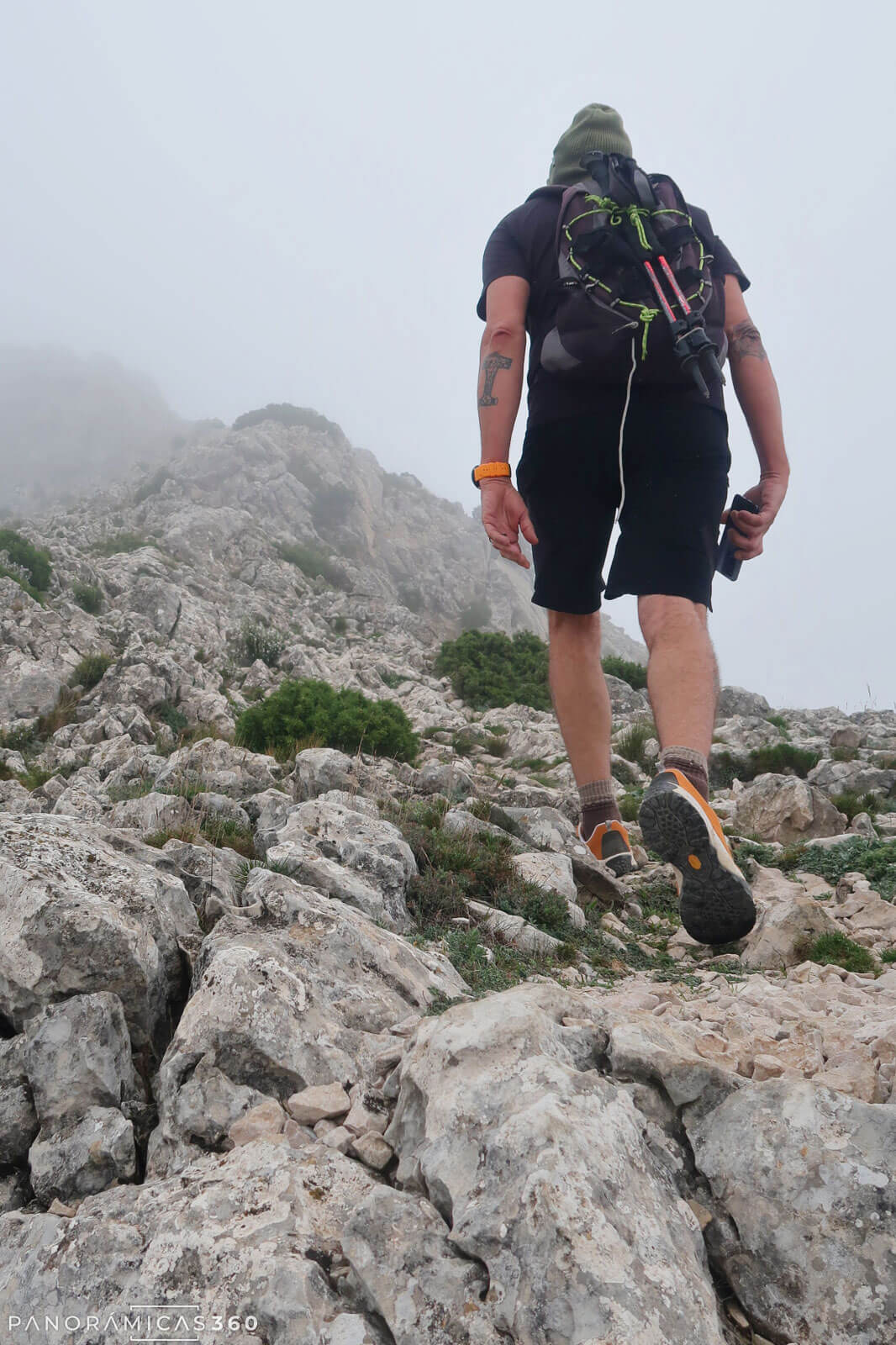 Desde el fuerte seguimos un sendero con hitos y alguna marca aislada de pintura que se dirige directamente hacia las paredes de la sierra.