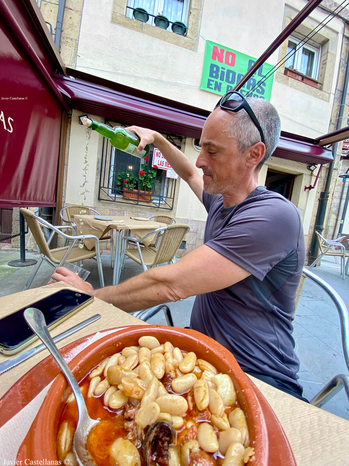 Aprovechando que estamos en Arenas de Cabrales y que el viaje ya ha pasado su ecuador, nos damos un buen homenaje a base de fabada y una tabla de quesos locales, regado todo con sidra, mientras repasamos la magnífica salida al Saltu’l Caleyu que acabamos de hacer y que, desde aquí, recomiendo a quien se acerque por la zona.