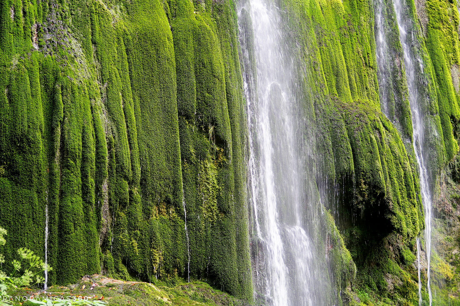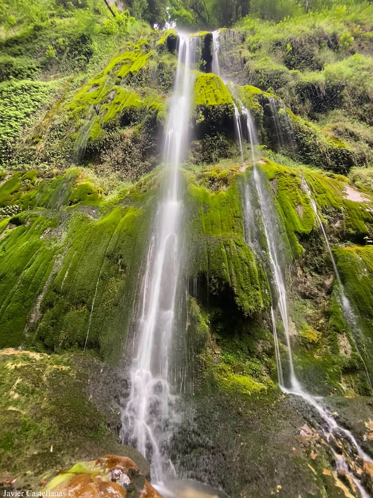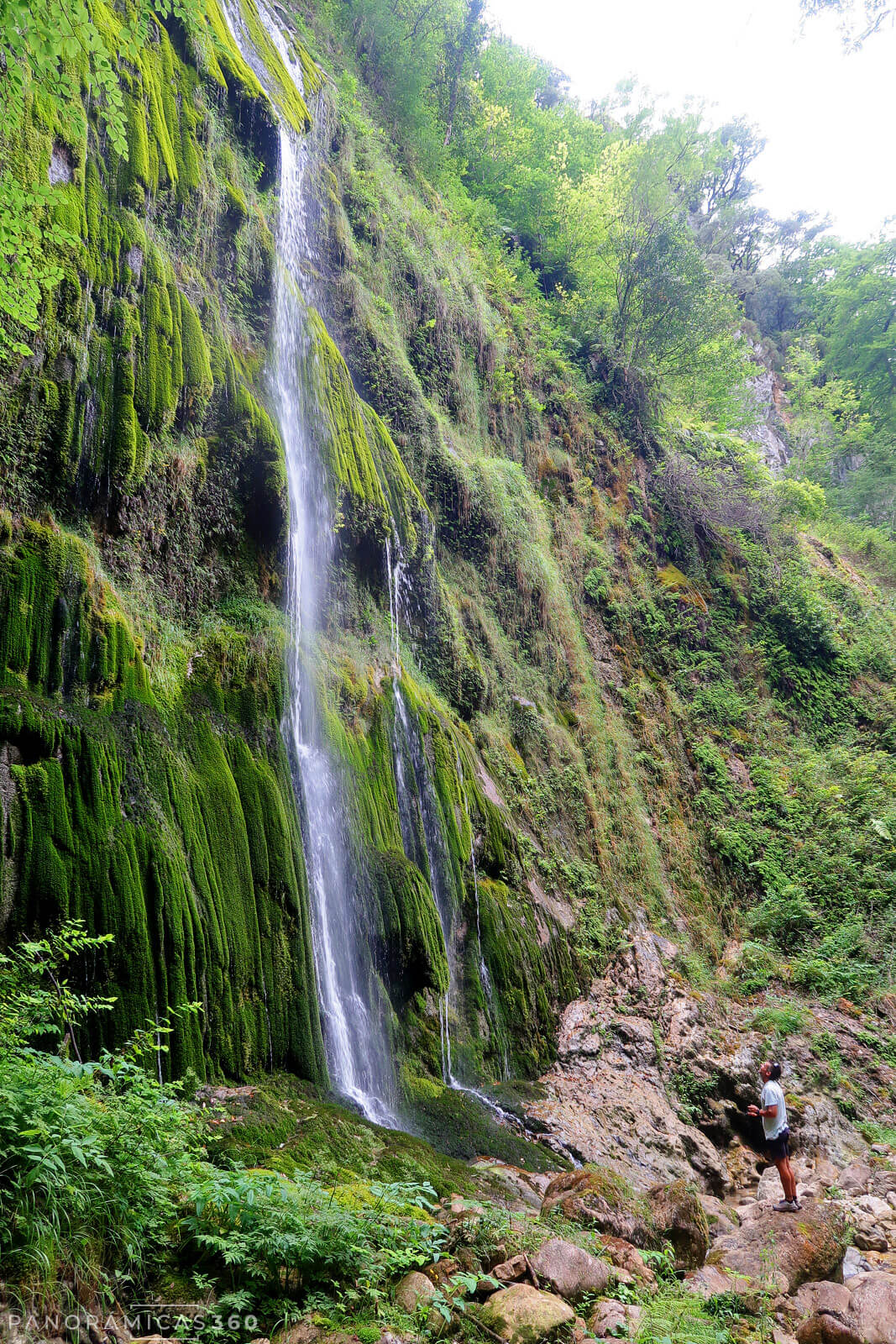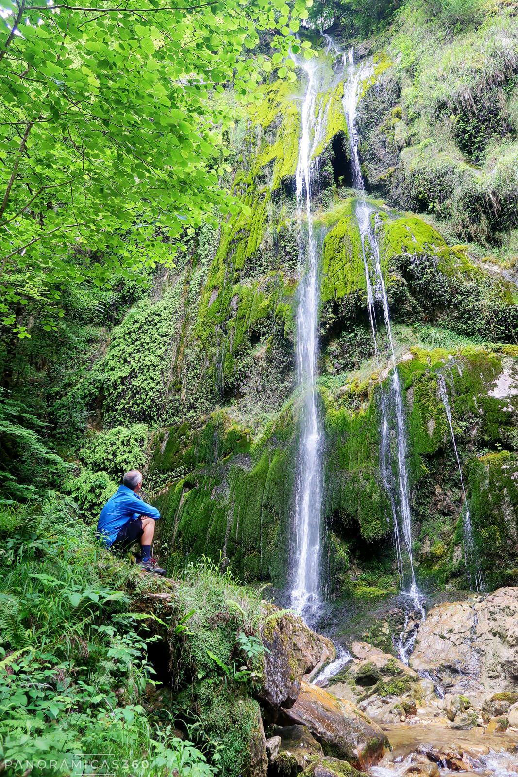A partir de aquí nos lo tomamos con calma: bajamos, subimos y vamos de un lado a otro para ver la cascada desde distintos ángulos. Pasamos un buen rato disfrutando de este rincón encajado en las estrecheces del río Miñances, donde la vegetación apenas deja ver la caída completa y la sensación de soledad es total.