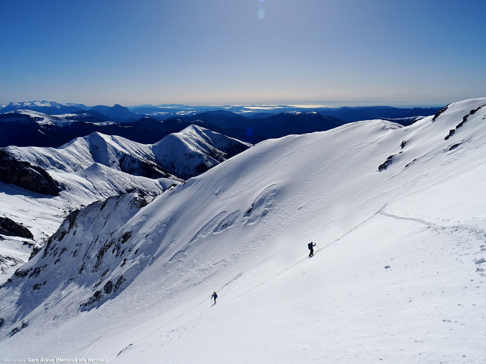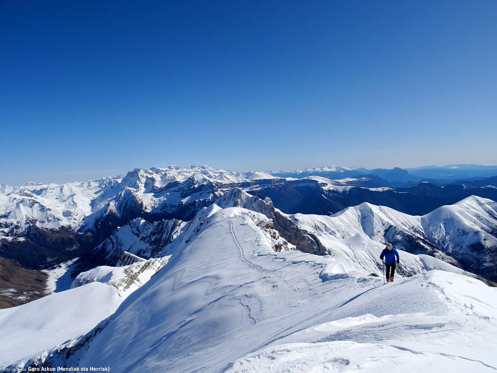 Garo y yo continuamos hasta el filo donde dejamos los esquís para continuar a pie. Llegamos a la conocida como “cima de esquís”, donde dependiendo de las condiciones de la nieve muchos montañeros dan por finalizada la ascensión.