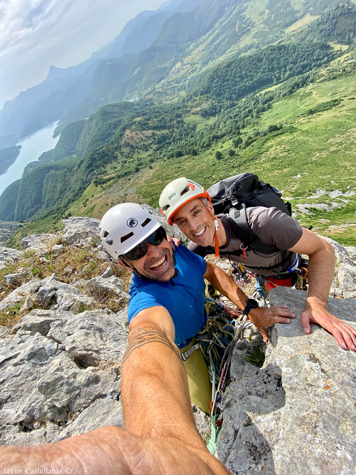 Mientras aseguro a Javi, veo a varios senderistas que han subido al Gilbo por alguna de sus rutas normales. Cuando él llega, recogemos el material y continuamos hacia la cumbre también nosotros.